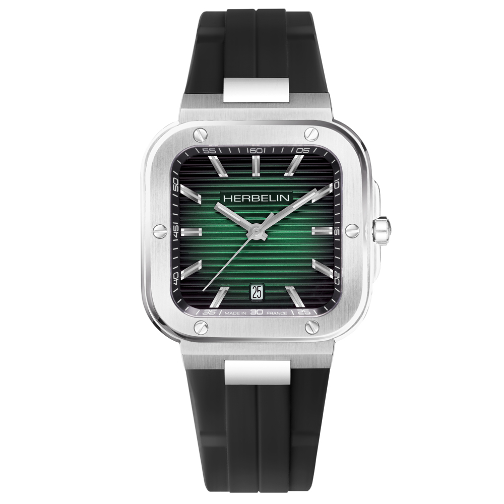 With its angular, square housing, the CAP CAMARAT presents itself for the first time in the retro style of the 70s. With a vintage character thanks to its square shape with rounded corners, the case is highlighted by a brushed bezel with polished facets. The extremely durable FKM strap adds comfort, with a modern touch. The horizontal green gradient dial accentuates the racy and powerful style. The water resistance of up to 100 metres rounds off the range of functions of the attractive timepiece. With its striking retro design, the novelty is the perfect accessory for any man who wants to make a statement.