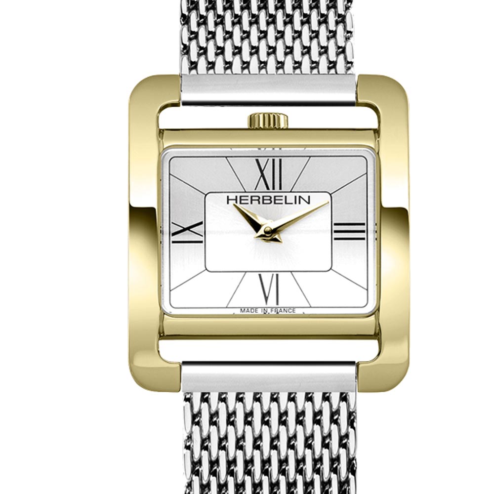 Fifth Avenue is utterly feminine and plays a subtle hand. A minimalist geometric designed steel case with gold PVD measuring 25.5mm x 19mm with a crown fitted at 12 o'clock, is unique and subtle . Completed with a steel mesh strap and a buckle clasp. A silver white target dial with fine roman numeral indices and powered by a Swiss-made quartz movement. A design from the French watchmaker that epitomising true French elegance.