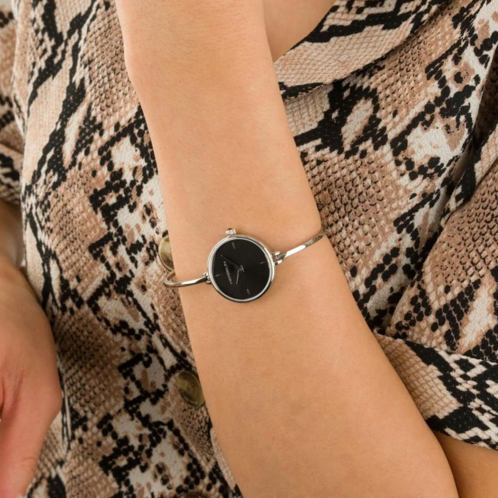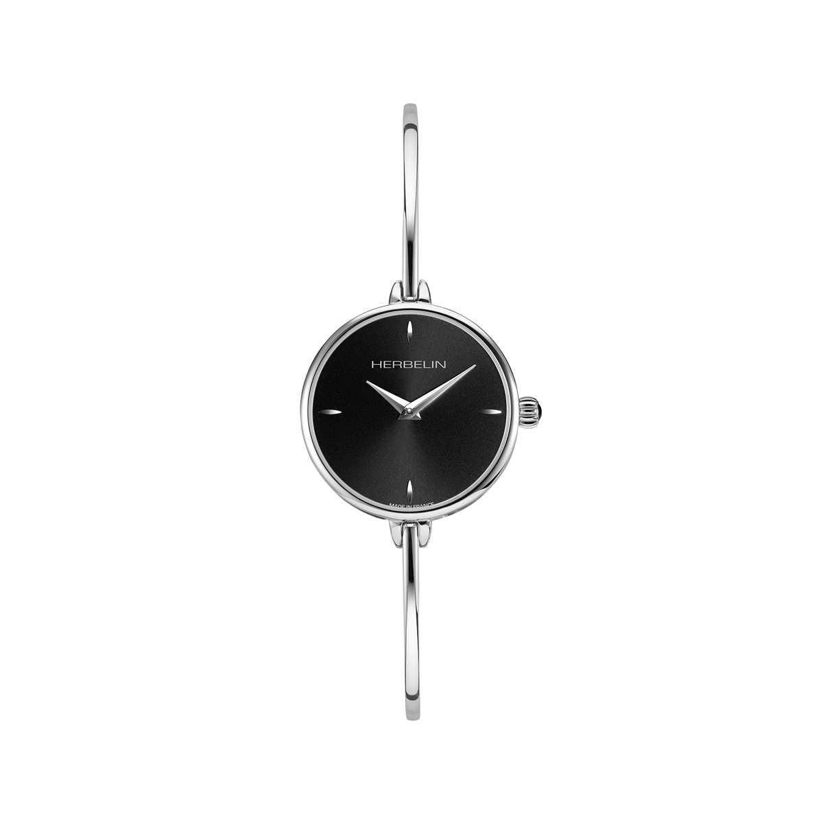 The HERBELIN Fil collection is designed with the attention to the smallest detail . Fil accompanies women who love subtly offbeat chique. The rigidity of the stainless steel bracelet coupled with the 26mm case accentuates a finesse that is refined and delicate. The clasp is a fold over link clasp that compliments the jewellery feel. The stark black dial with silver indices applied every quarter is protected by sapphire crystal, has an understated elegance. A true design that is inspired by the past, however adapted to current design technologies.