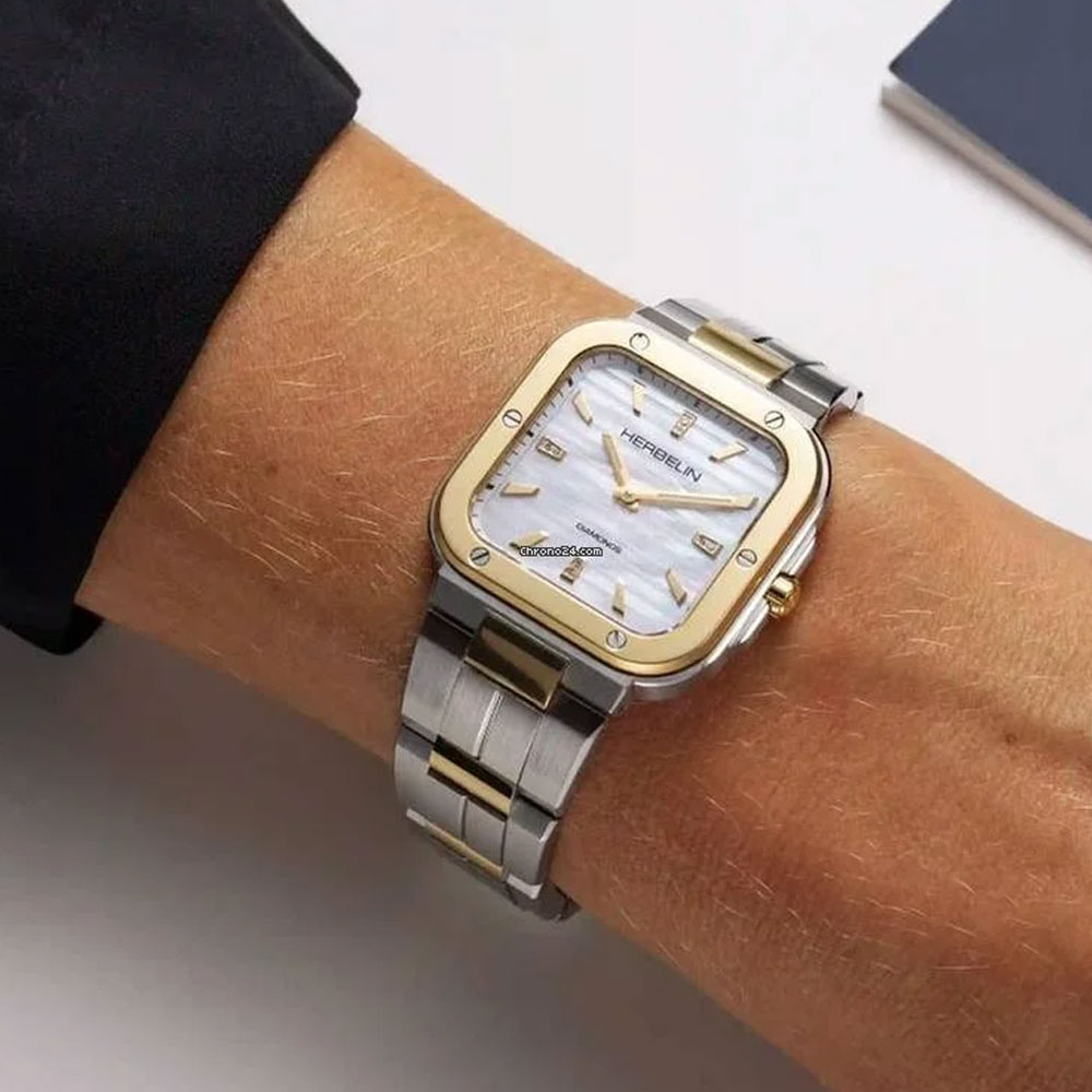 Elegant and luminous, CAP CAMARAT Square Steel & Or two -tone is a female watch that combines technicality and refinement. Its 316L stainless steel square housing, enhanced by a yellow gold PVD telescope, frames a natural mother -of -pearl dial punctuated with real diamonds. Protected by a sapphire glass and waterproof to 100 meters, it is distinguished by its 6.9 mm finesse and its Swiss quartz Ronda 751 movement, a guarantee of reliability and precision. Its two -tone steel bracelet, enhanced with a deploying loop, underlines its contemporary jewelry, between urban chic and timelessness.