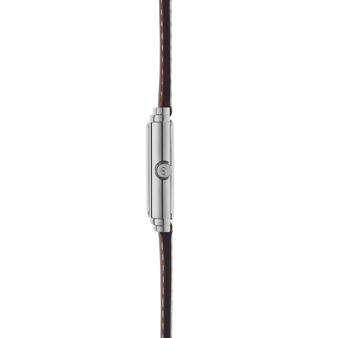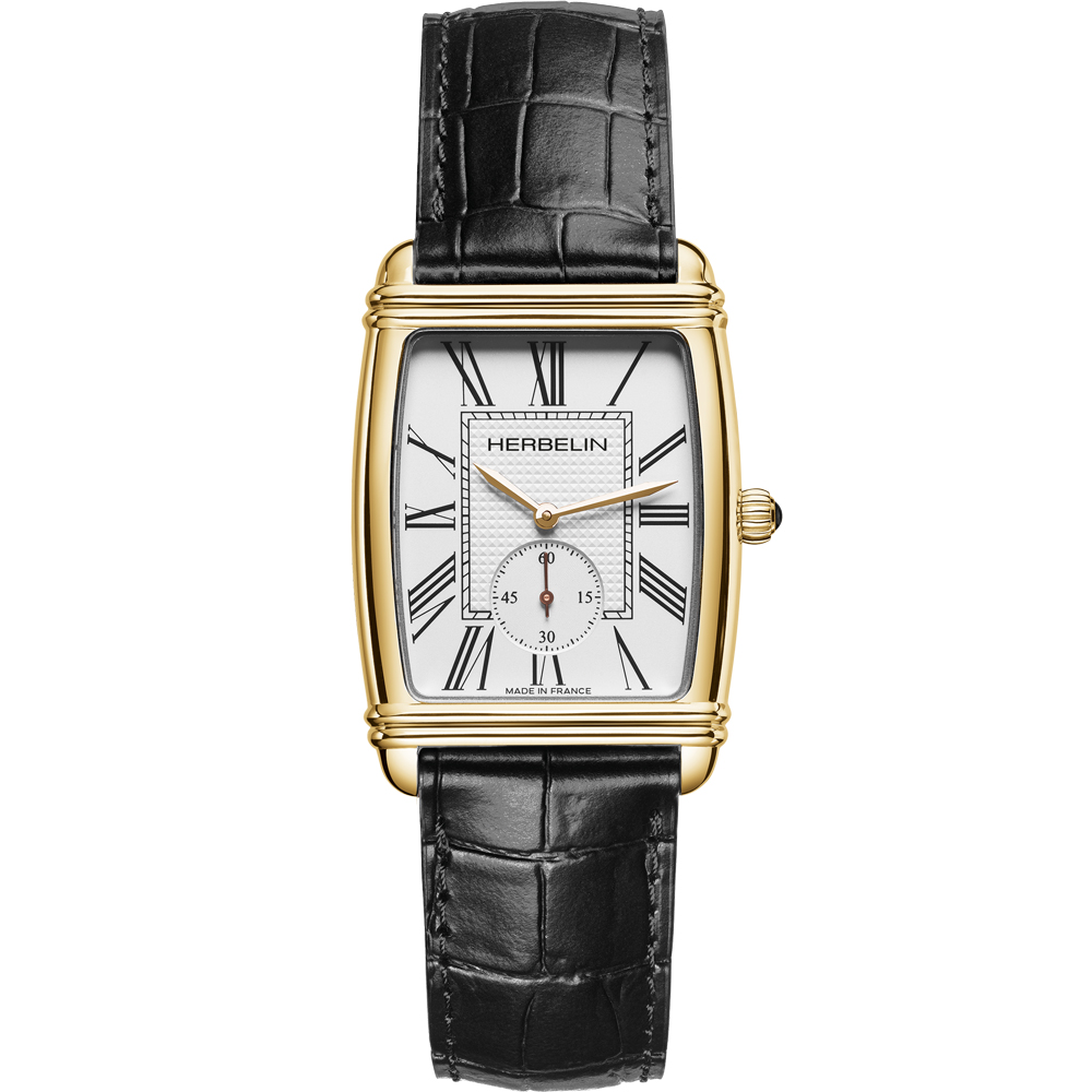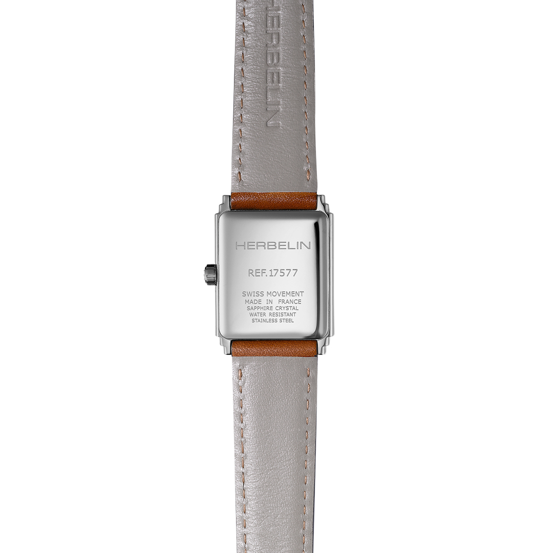 Embark on a journey through time with the ART DECO from HERBELIN. A singular model where the splendour of the 20s meets the audacity of the present: an elegant reinterpretation of the Art Deco artistic movement, adapted to the modern era. This watch expresses the very essence of luxury thanks to its elaborate finishes and assertive style. Its stepped gadrooned case, in stainless steel, silver sunburst dial, reveals a monochrome clean design. A dial that shines with a special brilliance, enhanced by meticulous details: a Chemin de fer type minute track and indexes combining faceted square ornaments. This creation, reflecting a harmony between French watchmaking tradition and modernity, is designed to be long-lasting. Powered by a Swiss Ronda 751 quartz movement with a calibre 51/2 and water-resistant to 30 m, the watch guarantees unparalleled precision and reliability. Combined with a tan alligator-style leather strap underlines elegance and sophistication, while ensuring aesthetics, practicality and comfort. ART DECO is the perfect watch for those who dare to combine French watchmaking tradition with modernity.